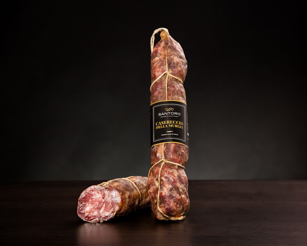 The taste of the south that melts in your mouth. This is how our Casereccio salami is.Only selected Italian pig, cooked wine and smoking, as much as we do. The slightly coarser grain and the natural casing with a larger caliber require aging between 70 and 80 days. And then, an explosion of taste.